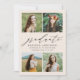 Convide convidados para sua festa de formatura em estilo com nosso convite para festa de formatura de fotos Elegante Script. Os convites elegantes para festas de formatura exibem 4 de suas fotos favoritas emolduradas em creme com "formando" em um roteiro preto e moderno de caligrafia. Personalize os convites adicionando o nome do formando, o nome da escola, o ano de graduação e os planos futuros. A parte de trás da festa de formatura minimalista convida a mostrar seus detalhes partidários em texto preto contra um fundo bege de luz sólida.