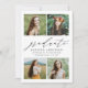 Convide convidados para sua festa de formatura em estilo com nosso convite para festa de formatura de fotos Elegante Script. Os convites elegantes para festas de formatura exibem quatro de suas fotos favoritas enquadradas em branco com "formando" em um roteiro de caligrafia preto e moderno. Personalize os convites adicionando o nome do formando, o nome da escola, o ano de graduação e os planos futuros. A parte de trás da festa de formatura minimalista convida a mostrar os detalhes do seu partido em texto branco contra um fundo preto sólido.