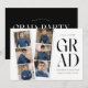 A festa de formatura Trendy convida com uma fita de vídeo com 6 fotos quadradas do formando. "Formando" é apresentado em caracteres negros modernos, com fundo branco. Personalize a frente do convite para festas de formatura multifotos adicionando o nome do formando, o nome da escola e o ano de graduação. O convite reverte para exibir seus detalhes de festa de formatura em letras brancas com um fundo preto. O convite à festa de formatura moderna é perfeito para formandos segundos graus e universitários.