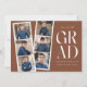 A festa de formatura Trendy convida com uma fita de vídeo com 6 fotos quadradas do formando. O "Formando" é apresentado em caracteres brancos modernos, com fundo castanho (a cor de fundo pode ser alterada). Personalize a frente do convite para festas de formatura multifotos adicionando o nome do formando, o nome da escola e o ano de graduação. O convite reverte para exibir seus detalhes de festa de formatura em letras brancas com um fundo marrom. O convite à festa de formatura moderna é perfeito para formandos segundos graus e universitários.
