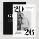Convide os convidados para a sua festa de formatura com os nossos convites para festas de formatura do Bold 2023. Os convites para a festa de formatura de na moda mostram a foto do formando moldada em branco com 2023 em caracteres negros nos cantos superior esquerdo e inferior direito. Personalize a frente dos convites para festa de formatura de fotos adicionando o nome do formando e o nome da escola. O convite reverte para exibir os detalhes do seu partido em letras brancas contra um fundo preto sólido.