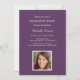 Anuncie seu segundo grau ou formando universitário em estilo com este anúncio de graduação e convite de festas "Sleek Stripe". A placa dupla possui duas fotos do formando e um simples design de sobreposição que destaca o nome e a foto. Plum cor roxa e branca.