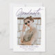 A festa de formatura da Trendy convida a apresentar a foto do formando na frente, enquadrada por uma borda branca e dura. "Formando" é exibido em um script de assinatura roxo com o nome do formando, o nome da escola e o ano de graduação mostrado abaixo. O convite de festa de formatura moderno reverte para exibir seus detalhes de festa de formatura com um plano de fundo exclusivo de linha roxo e branco estampado. Este convite para festa de formatura fotográfica é perfeito para festas de segundos graus e formandos.