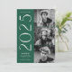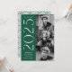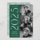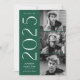 Convites de festa de formatura para 2025 com três fotos do formando localizadas à direita do design em um layout vertical. "2025" é apresentado em caracteres brancos, modernos de arte, com um fundo verde. Personalize o convite para festa de formatura de fotos moderno, adicionando o nome do formando e o nome da escola. A design reverte para exibir os detalhes da festa de formatura com um plano de fundo geométrico verde e branco. Perfeito para segundos graus e formandos!
