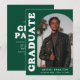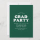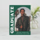 Na moda e convite de festa de formatura de tendência apresentando a foto do formando na frente com um quadro de fotos de arco de offset. O "Formando" é apresentado em caracteres brancos retrorreflectores a negrito num fundo verde. Personalize a frente do convite para festa de formatura de fotos de arco adicionando o nome do formando, a escola e o ano de graduação. O convite reverte para exibir os detalhes da sua festa de formatura. O convite à festa de formatura verde é perfeito para formandos segundos graus e universitários.