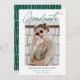 A festa de formatura da Trendy convida a apresentar a foto do formando na frente, enquadrada por uma borda branca e dura. "Formando" é exibido em um script de assinatura verde com o nome do formando, o nome da escola e o ano de graduação mostrado abaixo. O convite de festa de formatura moderno reverte para exibir seus detalhes de festa de formatura com um plano de fundo exclusivo de linha verde e branco estampado. Este convite para festa de formatura fotográfica é perfeito para festas de segundos graus e formandos.