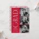 A festa de formatura de tendências convida a apresentar três fotos do formando localizadas à direita do design em um layout vertical. "Formando" é apresentado em caracteres brancos, modernos de arte, com um fundo vermelho. Personalize o convite para festa de formatura de fotos moderno, adicionando o nome do formando, o ano de graduação e o nome da escola. A design reverte para exibir os detalhes da festa de formatura com um plano de fundo geométrico vermelho e branco. Perfeito para segundos graus e formandos!