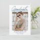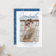 A festa de formatura da Trendy convida a apresentar a foto do formando na frente, enquadrada por uma borda branca e dura. "Formando" é exibido em um script de assinatura azul com o nome do formando, o nome da escola e o ano de graduação mostrado abaixo. O convite de festa de formatura moderno inverte-se para exibir seus detalhes de festa de formatura com um plano de fundo exclusivo de linha impresso em azul e branco. Este convite para festa de formatura fotográfica é perfeito para festas de segundos graus e formandos.