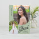 Convide seus amigos e família para sua Festa de formatura com este elegante convite verde e preto, com duas fotos. O design apresenta fotografias com uma margem arquivada e oferece texto personalizado para os detalhes da sua festa.