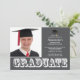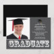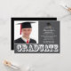 Comece seu evento com nosso convite para festa de formatura de fotos da cinza moderna. Design apresenta a palavra "formando" em um conjunto branco sobre um fundo de cinza escuro com um boné de formando com fita adesiva. Convite perfeito para a formatura de um segundo grau ou formandos. Apenas preencha suas informações, adicione sua foto e você está pronto para ir. Visite nosso compro para uma grande variedade de convites para a graduação de tendências e na moda em uma grande variedade de cores escolares!