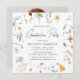 Convites simples e de festa de formatura floral com detalhes de festa de formatura aninhados, quadro floral quadrado de flores silvestres de cor d'água e folhagem em tons de branco, amarelo, vermelho, creme, azul e verde. A parte de trás do convite mostra a sua foto quadrada de sangramento de cheio. Os convites de festa de formatura quadrada são perfeitos para formandos segundos graus e universitários.