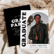 Na moda e convite de festa de formatura de tendência apresentando a foto do formando na frente com um quadro de fotos de arco de offset. O "Formando" aparece em negrito com a inscrição retrorreflectora preta sobre um fundo branco. Personalize a frente do convite para festa de formatura de fotos de arco adicionando o nome do formando, a escola e o ano de graduação. O convite reverte para exibir os detalhes da sua festa de formatura. O convite à festa de formatura branca e negra é perfeito para formandos segundos graus e universitários.