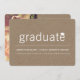 Um cartão com fotos de anúncio de graduação 2 em 1 minimalista moderno e design de convite de festas de formando com uma simples tipografia ousada com conselho de argamassa/sotaque de boné de formatura em uma camada de fundo texturizada de papel kraft castanho que pode ser removido e personalizado com qualquer cor personalizada plana de sua escolha. Os detalhes da foto e do convite da festa estão na parte de trás do cartão. Todos os elementos de design são móveis e editáveis. Mais opções de edição na página de personalização. Você pode alterar a cor de fundo para qualquer cor de sua escolha. Concebido por gordura*fa*estanho. Fácil de personalizar com seu próprio texto, foto ou imagem. Para pedidos personalizados, entre em contato direto com o . Encargos personalizados aplicam-se. — https://www.zazzle.com/collections/graduation_party_supplies-119447822100562139 — https://www.zazzle.com/collections/graduation_announcement_cards-119240297798176351 — www.zazzle.com/collections/graduation_party_invitations-119988321070623801 — www.zazzle.com/collections/graduation_thank_you_cards-119015369615228414 — www.zazzle.com/fat_fa_tin www.zazzle.com/color_therapy www.zazzle.com/fatfatin_blue_knot www.zazzle.com/fatfatin_red_knot www.zazzle.com/fatfatin_mini_me www.zazzle.com/fatfatin_design www.zazzle.com/fatfatin_box www.zazzle.com/fatfatin_ink