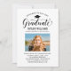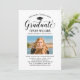 Convite de festa de formatura com script moderno “Graduado”, ícone de chapéu e um layout centrado na foto. Tipo e espaçamento limpos tornam os detalhes fáceis de ler. Cartão de fundo azul royal mostrado para um acento clássico e ousado. Personalize o nome, data e informações de RSVP.