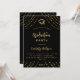 Um fundo preto decorado com estrelas douradas falsas e um boné. Personalize e adicione um nome, detalhes da festa e ano. O texto Graduação e o nome são escritos com um script de estilo moderno, escrito à mão.