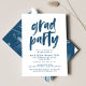 Convide convidados para comemorar o formando com nossos convites para a festa de formatura moderna! Os convites de festa de formatura de tendência apresentam "parte formando" em uma fonte de pincel pintada por marinho. Personalize os convites para festas de formatura criativas adicionando o nome do formando, o nome da escola, o ano de graduação e os detalhes da festa de formatura. Os convites, ao contrário, mostram um marinho e um design branco de pincelada.
