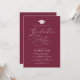 convite para festas de formando maroon do script de letras brancas elegante. O texto e as cores podem ser editados.
