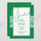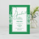 Banda de Damask em verde e branco, bordado em convites para festa de formatura verde. VEJA TODAS AS CORES pré-feitas em nossa loja.