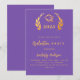 Fundo roxo. Uma coroa clássica de ouro falsa e um boné de formatura. Personalize e adicione o ano, o nome e os detalhes. Texto do ouro.