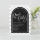 Os arcos estão dentro! Celebre seu formando em estilo com esses convites de festas de formatura bonitinhos e modernos. O Partido do Formando é mostrado em um roteiro manuscrito, juntamente com um padrão geométrico de arcos simples no fundo. Mostrado em uma paleta de preto e branco, mas todas as cores são editáveis por você! © Kimbellish, LLC