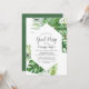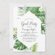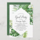 Este convite à festa de formatura de palma tropical selvagem é perfeito para uma praia ou uma festa de formando de verão. A design apresenta um conjunto exótico de folhas de palmeiras de banana-d'água verde, samambaias, folhagem, plantas botânicas e verde para uma sensação tropical de verão. Personalize o verso do cartão com o nome do convidado de honra e o evento.