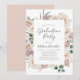Elegantes convites para graduação floral que incluem o nome do formando e detalhes da festa em cinzas, enquadrados por rosas brancas cremosas, pincéis, orquídeas poeirentas de rosa e folhagem verde. Os convites para festas de formatura femininas são perfeitos para formandos segundos graus e universitários.