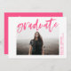 Convide convidados para comemorar o formando com nossos convites para festas de formatura de Script Brugado Moderno. Os convites da festa de formatura moderna mostram a foto do formando moldada em branco com "formando" em um script de aquarela rosa quente. Personalize a frente adicionando o nome do formando, a escola e o ano de graduação. O verso apresenta os detalhes da sua festa em branco abaixo da frase "Celebrar o Formando!" e um fundo rosa quente.