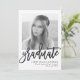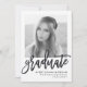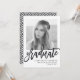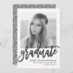 Convide seus amigos e família com um convite para festas de formatura moderno e chique. O design apresenta uma fonte de script de tendência, espaços reservados para uma imagem e texto personalizado e um padrão de deco de arte preto e branco no verso.