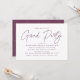 Convites de diversão e festas de formatura modernas, com "Formando Party" em um roteiro roxo de tendências com seus detalhes de festa de formatura mostrados abaixo. O convite simples de festa de formatura inverte-se para exibir um padrão geométrico roxo e branco pontilhado.