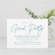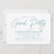 Convites de diversão e festas de formatura modernas com "Partido Formando" em um roteiro de turquesa/teal com seus detalhes de festa de formatura exibidos abaixo. O convite simples para festas de formatura inverte-se para exibir um padrão geométrico giro e pontilhado branco.