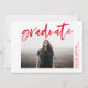Convide convidados para comemorar o formando com nossos convites para festas de formatura de Script Brugado Moderno. Os convites da festa de formatura moderna mostram a foto do formando moldada em branco com "formando" em uma fonte vermelha de script de aquarela. Personalize a frente adicionando o nome do formando, a escola e o ano de graduação. O verso apresenta os detalhes da sua festa em branco abaixo da frase "Celebrar o Formando!" e um fundo vermelho.