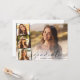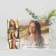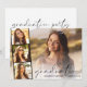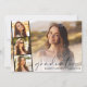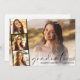 Imagem elegante sobrepõe festa de formatura com cartão plano de convite, com a fotografia do formando sobreposta com uma faixa de três fotos quadradas menores e "formando" em um fino roteiro moderno e seu nome e ano de aula em uma simples tipografia. No verso, adicione os detalhes da festa de formatura.