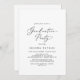 Este delicado convite à festa de formatura de caligrafia negra é perfeito para uma festa moderna ao ar livre. A design romântica minimalista apresenta uma magnífica e elegante tipografia negra num fundo branco com um aspecto simples e limpo.