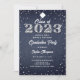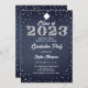 Um convite à festa de formatura moderno, elegante e chique com o tema denim e diamante, com um fundo denim com matiz azul índigo, o ano 2023 coberto em diamantes (simulados, não em diamantes reais) e tipografia em branco. Um design de "denim e diamantes" chico para um formando jovem!