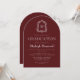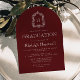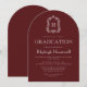 Este clássico, elegante design de convite para festa de formatura apresenta um monograma branco inicial em letra serif aberta rodeada por uma crista de acanthus em um fundo vermelho de burgundy em forma de arco de tendência. Personalize o texto com o nome do formando e os detalhes da parte. A parte de trás do cartão é uma arma sólida. Ideal para segundo grau, faculdade ou formando universitário.