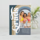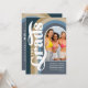 Bem-vindo à celebração de formatura mais legal de todos os tempos: convites de festa de formatura conjunta! Quer seja seu filho e filha, ou um grupo de amigos, este convite fará a declaração perfeita para o dia especial deles. Mostre sua foto favorita dos formandos com estilo, com um cenário de arco de arco-íris colorido vintage boho azul moderno. O modelo de texto retrô é fácil de personalizar, para que você possa personalizar os convites para serem únicos e especiais para os seus formandos. Estes convites de festa de formatura em grupo certamente se destacarão! Quer você os envie para amigos, familiares ou colegas, todos apreciarão o design único.