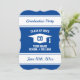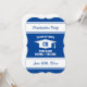 Mais velho Elegante formando 2024 convites para festa de formatura Segundo grau. Convites personalizados para mais velho graduados, formandos universitários ou estudantes universitários. Personalizar texto de lançamento e combinações de cores. Design azul e branco simples com o logotipo do boné de formatura moderno, ano de classe, monograma, data, RSVP etc. Tipografia com na moda com faixas atléticas. O suporte de tendência cortou a forma com cantos arredondados clássicos. Cartões de convite perfeitos para filhos, filhas, irmãos, irmãs, namorado, namorada, convidados, amigos, família, etc.