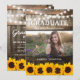 Celebre o auge do sucesso acadêmico no estilo clássico do campo! Nossos convites de festa de formatura rústicos misturam nostalgia com charme, apresentando um cenário de barril de carvalho de celeiro, luzes cintilantes, girassóis de verão e uma foto do formando orgulhoso. Pensados com o ano da turma e tipografia branca moderna, esses convites adicionam um toque personalizado à sua celebração inesquecível.