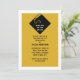 Convites de formatura criativos com o clássico chapéu de graduado preto em fundo dourado.