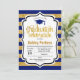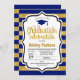 Convite de festa de formatura com Marinho Azul Dourado Stripes Elegante design simples moderno com falso brilho dourado e letra de script. Perfeito para uma festa elegante.
