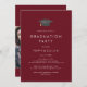 Este convite duplo de festa de formatura boné vermelho-formando-chic é perfeito para uma festa moderna ao ar livre. O simples design apresenta uma tipografia clássica, vermelha e branca, de burlagem escura, com um chapéu de graduação em cor d'água preto e dourado. Jogue uma festa por 2 formandos. Personalize as costas com uma foto de cada formando e sua escola.