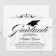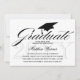 © Designs socialitas. Nossa elegante escrita / caligrafia texto e boné de formatura "formando", com texto preto sobre fundo branco, adiciona um toque de simples elegância a este convite de formatura. O fundo tem uma sutil cinza de ano de graduação. O verso do convite tem um design elegante com "Classe de" e texto do ano. Substitua facilmente nosso texto de modelo para o seu evento especial.