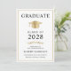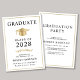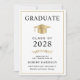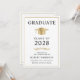 Convite de formatura universitária elegante e convite para festa com um chapéu de formatura dourado e tipografia moderna simples para o nome do graduado, ano de formatura, faculdade ou universidade, grau e curso ou honrarias. No verso, adicione os detalhes da formatura.