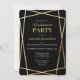 Comemore sua graduação em 2025 com a família e amigos com este elegante convite de festas de formatura geométrica preto e ouro. Este design apresenta um estilo formal em preto e ouro com sotaques geométricos dourados e um falso ouro de volta.