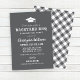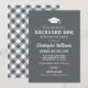 Celebre seu formando com este convite de festa de formatura em carvão cinza, apresentando uma tipografia ousada de “Churrasco no Quintal”, um ícone de chapéu de formatura e um estilo rústico e limpo. Ideal para um churrasco casual, casa aberta ou celebração de verão no quintal. O verso apresenta um padrão xadrez cinza e branco coordenado para um clima clássico de picnic. Personalize com o nome do formando e os detalhes da festa.