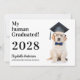 Meu Homem se formou! Convide amigos e família para a sua formatura com estes cartões de convite para formatura de amante de cães divertidos. Personalize com sua foto favorita de cachorro, ou pré-escola, jardim de infância, foto de criança elementar com seu cachorro, e personalize com o ano de graduação, nome, escola e todos os seus detalhes de festa de formatura! Esta coleção de formandos de amantes de cães será a favorita entre todos os amantes de cães e mães de cães.