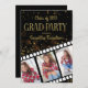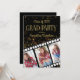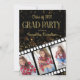 Convite de festa de formatura desenhado com um tema de fita de Hollywood. Apresentando 3 fotos em fundo preto com texto dourado e um livro dourado brilhante, este convite é uma maneira divertida de convidar seus amigos e família a celebrar com você.