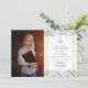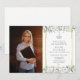 Com delicadas folhas verdes em aquarela e uma borda geométrica dourada, este convite de festa de formatura sofisticado pode ser personalizado com a foto do formando e detalhes da celebração. Criado por Thisisnotme©