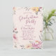 Escrita moderna de festa de formatura caligráfica rodeada por uma flor de aquarela em amarelo pastel mutado, pêssego, madre e ameixa, elegante e romântico, excelente para festa de formatura em primavera e outono.