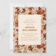Celebre o graduado com um convite de festa de formatura caloroso e elegante, apresentando um padrão botânico floral enferrujado e tipografia moderna. A paleta de sienna terrosa e creme parece perfeita para uma celebração de formatura no outono ou um tema de festa neutro e aconchegante. A moldura floral emoldura os detalhes do evento de forma bonita, mantendo o visual geral limpo e moderno. Personalize o convite com o nome do graduado, data e local da festa.